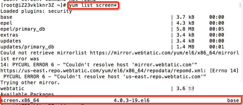 1、查看YUM源上是否有screen安装包