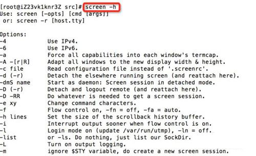 3、安装后,打印帮助信息,可初步了解screen的功能