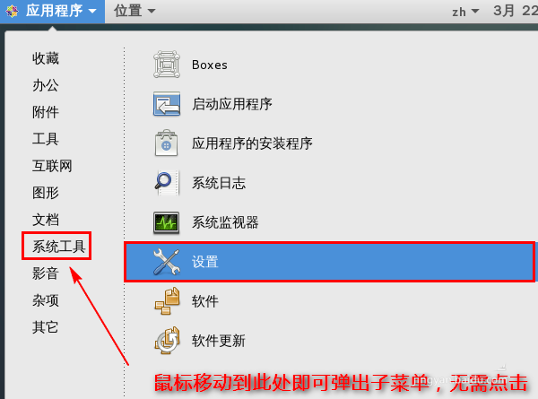 1、首先,打开“应用程序”-“系统工具”-“设置”。