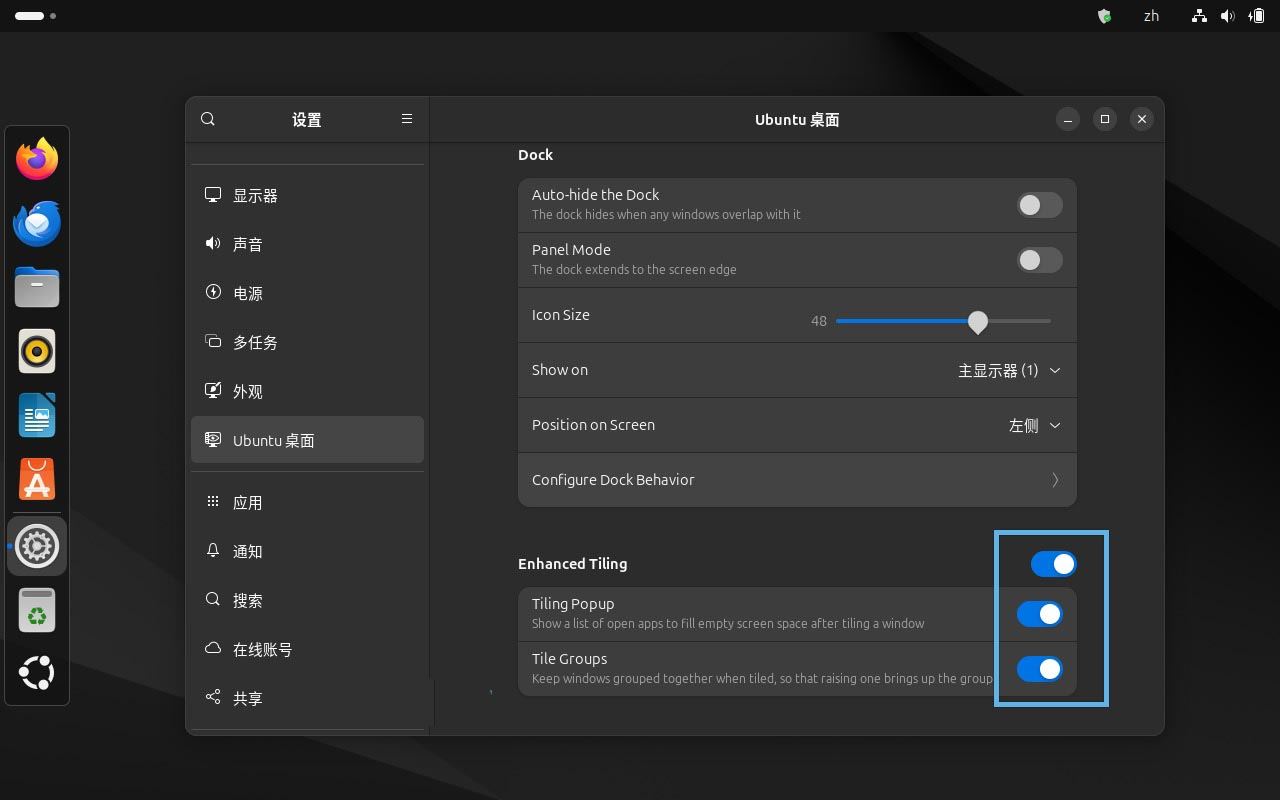 启用 Ubuntu 窗口平铺功能
