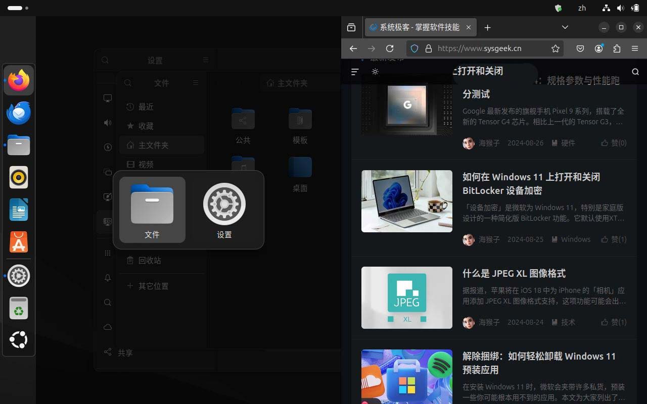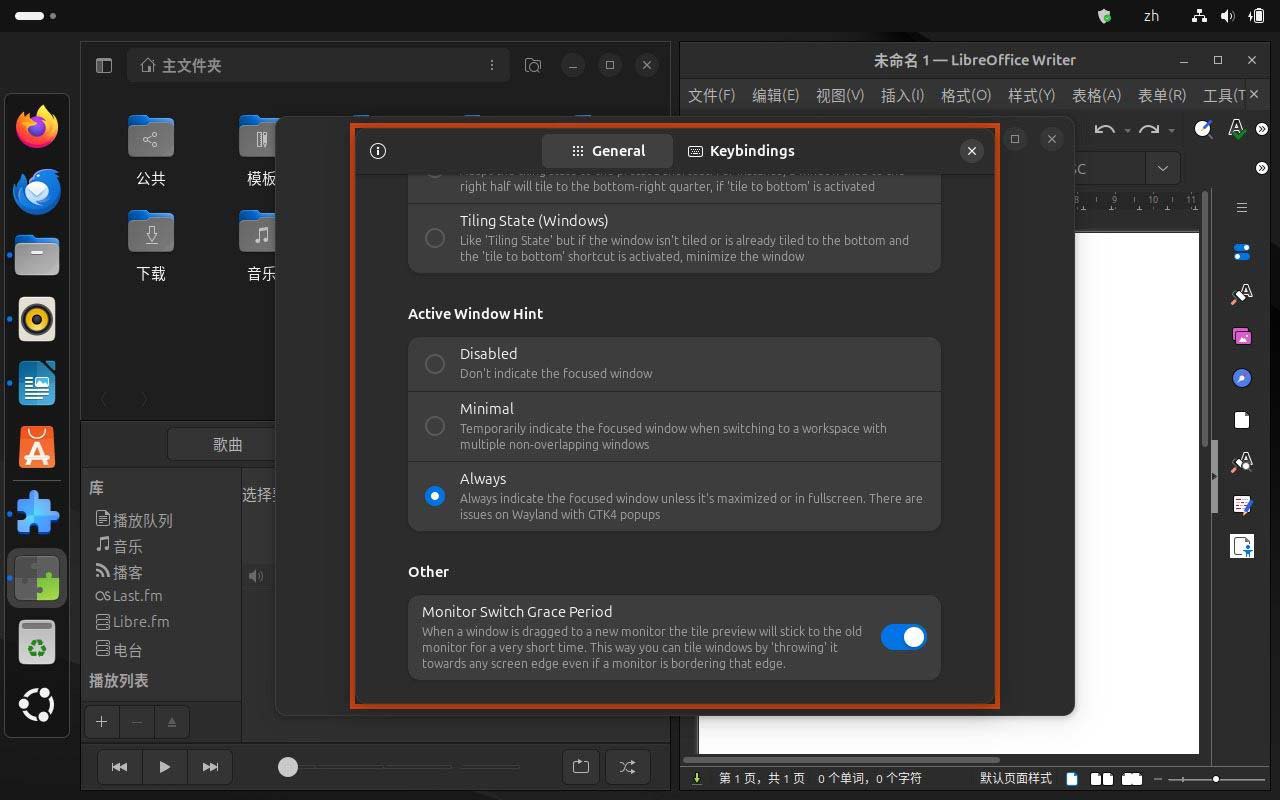 - 从 Ubuntu 23.10 开始,系统内置了一个「Ubuntu 平铺助手」扩展,可以根据屏幕空间智能放置窗口,提升平铺体验。