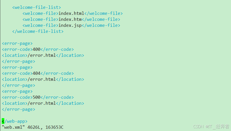 在conf/web.xml文件中,可以定义自定义错误页面,避免默认错误页面泄露版本号: