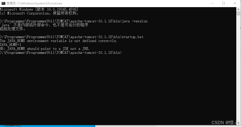 即使你已经配置了 JAVA_HOME 环境变量,但如果路径不正确或指向了一个不存在的 JDK 安装目录,也会导致 Tomcat 无法启动。
