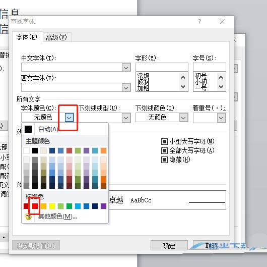 5.这时进入到字体窗口中,用户直接点击字体颜色,在弹出来的下拉面板中用户选择好颜色