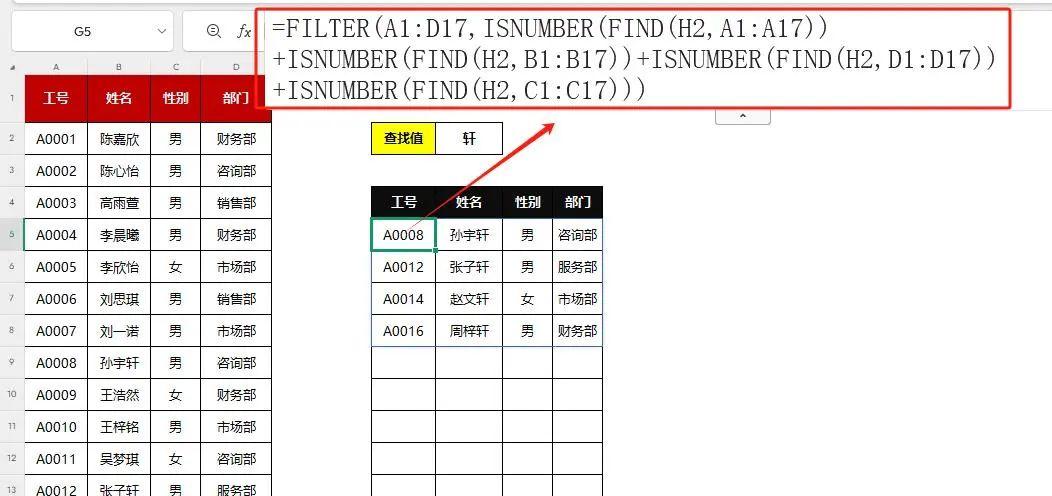 就像给 Excel 装上雷达,只要单元格里有你输入的字,比如 “市”,“市场部” 相关信息全被揪出来!