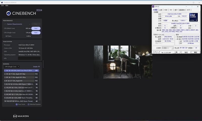 至于多核性能,由于酷睿Ultra 9 285H没有超线程,比起AMD锐龙AI 9 HX 370差了6%左右,但是比起32W的酷睿Ultra 7 155H则强了23%