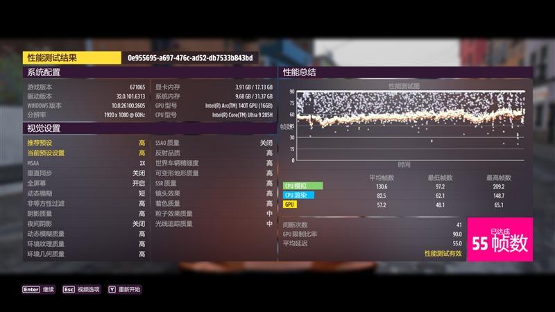 1080P分辨率帧率为55FPS。