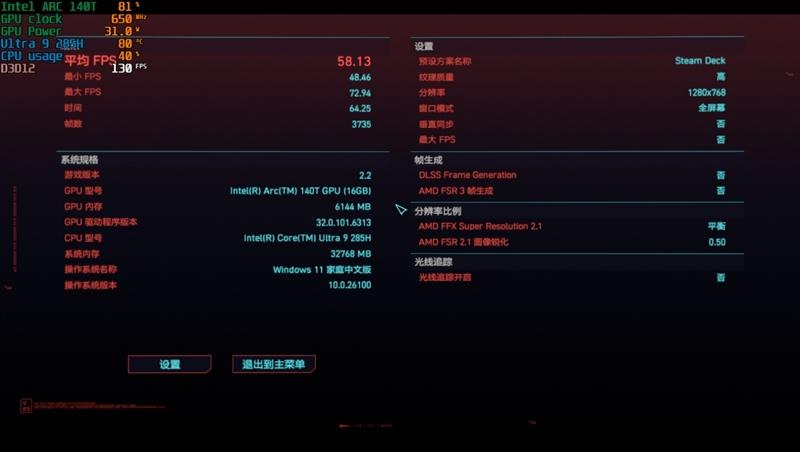 核显性能测试:相比Arc 140V略有差距