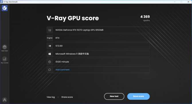 V-Ray这款软件支持CPU和GPU两种渲染模式,并且支持RTX光线追踪渲染,在这项测试中,综合成绩表现都比较不错,能够满足后期渲染的性能要求。