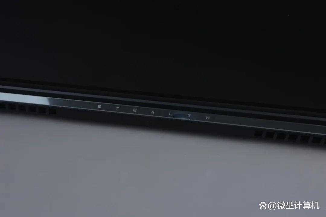 稍有不同的是,这台机器的尾部铰链部位加入了一条镜面装饰带,上面印有“STEALTH”字样,这条装饰带对整个机身起到了一定的点缀作用,个人认为,如果这里能有灯效点缀就更好了。