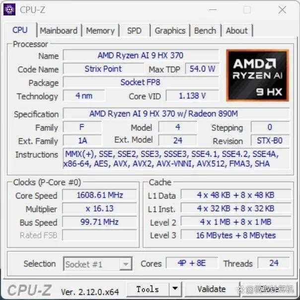 微星绝影16 AI+锐龙版搭载锐龙AI 300家族中首发的旗舰处理器——锐龙AI 9 HX 370。这款处理器基于先进的4nm生产工艺,采用“Zen 5”系列处理器架构,通过4个“Zen 5”超大核心和8个“Zen 5c”大核心设计,组成12核心24线程,相比传统的异构核心设计,“Zen 5”和“Zen 5c”的架构高度类似,都支持相同的计算指令集,只是在核心体积、频率和缓存容量上有所差异。其单核最高加速频率达到5.1GHz,配备36MB缓存,标准功耗为28W,可配置功耗为15W~54W。此外,锐龙AI 9 HX 370处理器还支持AMD精准频率提升(PBO)技术和AVX-512指令集,能够带来更出色的性能,其对AI应用的加速也更为友好。锐龙AI 9 HX 370处理器内置的NPU支持锐龙AI技术,NPU算力达到50 TOPS,能够流畅地运行由NPU驱动的各类AI特色应用,为用户带来别具一格的AI PC使用体验。