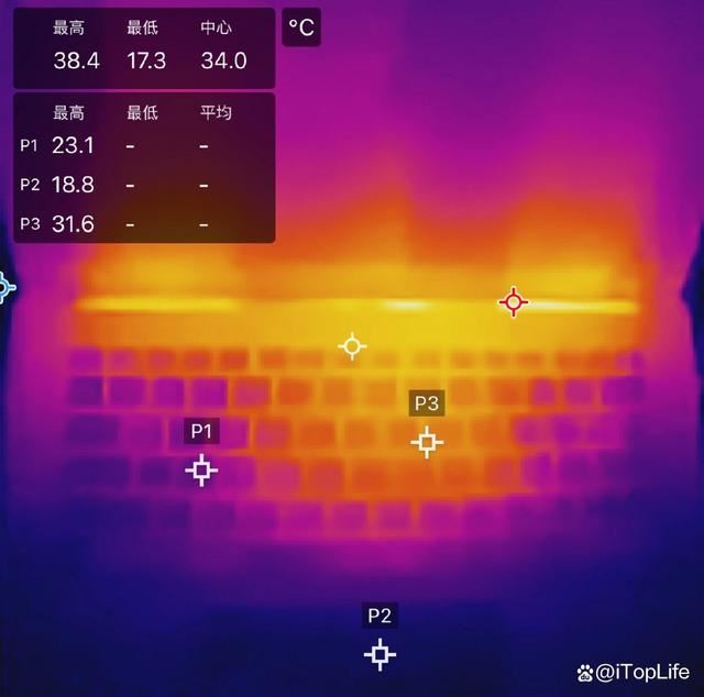 不仅如此,在室温21℃的环境中,YOGA Air 15 Aura AI元启版的发热集中在屏幕下方,最高温度也仅为38.4℃,长时间保持清凉的状态,也为后续的性能释放和应用体验奠定了坚实的基础。