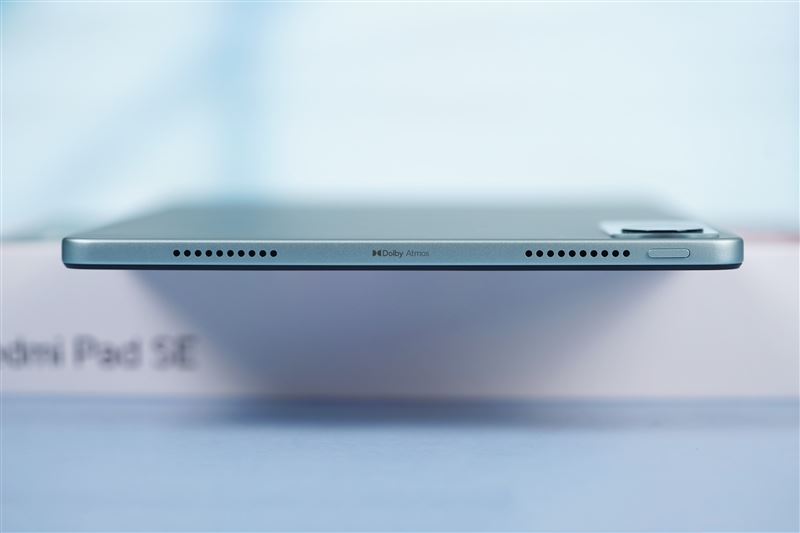 在扬声器上,Redmi Pad SE搭载了对称式立体四扬声器,支持杜比全景声。