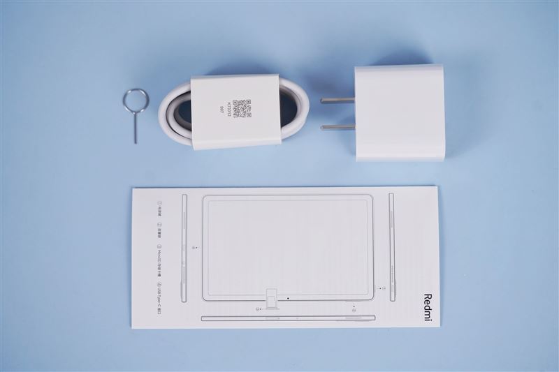 包装内附带的卡针、数据线、10W充电器、说明书配件。