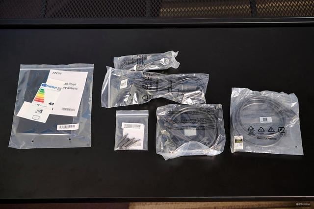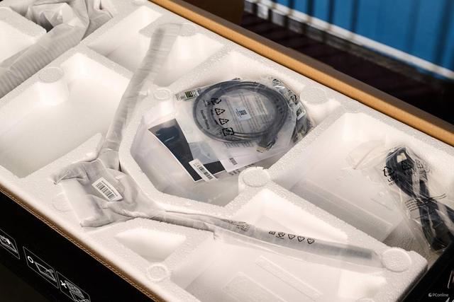 配件也是相当丰富:产品说明书、壁挂安装螺丝、USB 2.0 Type B数据线、AC电源线,Display Port 1.4a线材,以及一条带认证的HDMI 2.1线材。