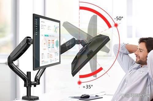 ②显示器支架升降、旋转和遮光罩:因为每个人的工作习惯不同,显示器各种调整有利于我们保持良好的身体坐姿不疲惫。尤其是身高较高的人士,显示器高度可调和角度可调非常重要。尽量选配带有VESA壁挂孔的显示器,后期可以搭配屏幕支架控制显示器以任意角度使用。