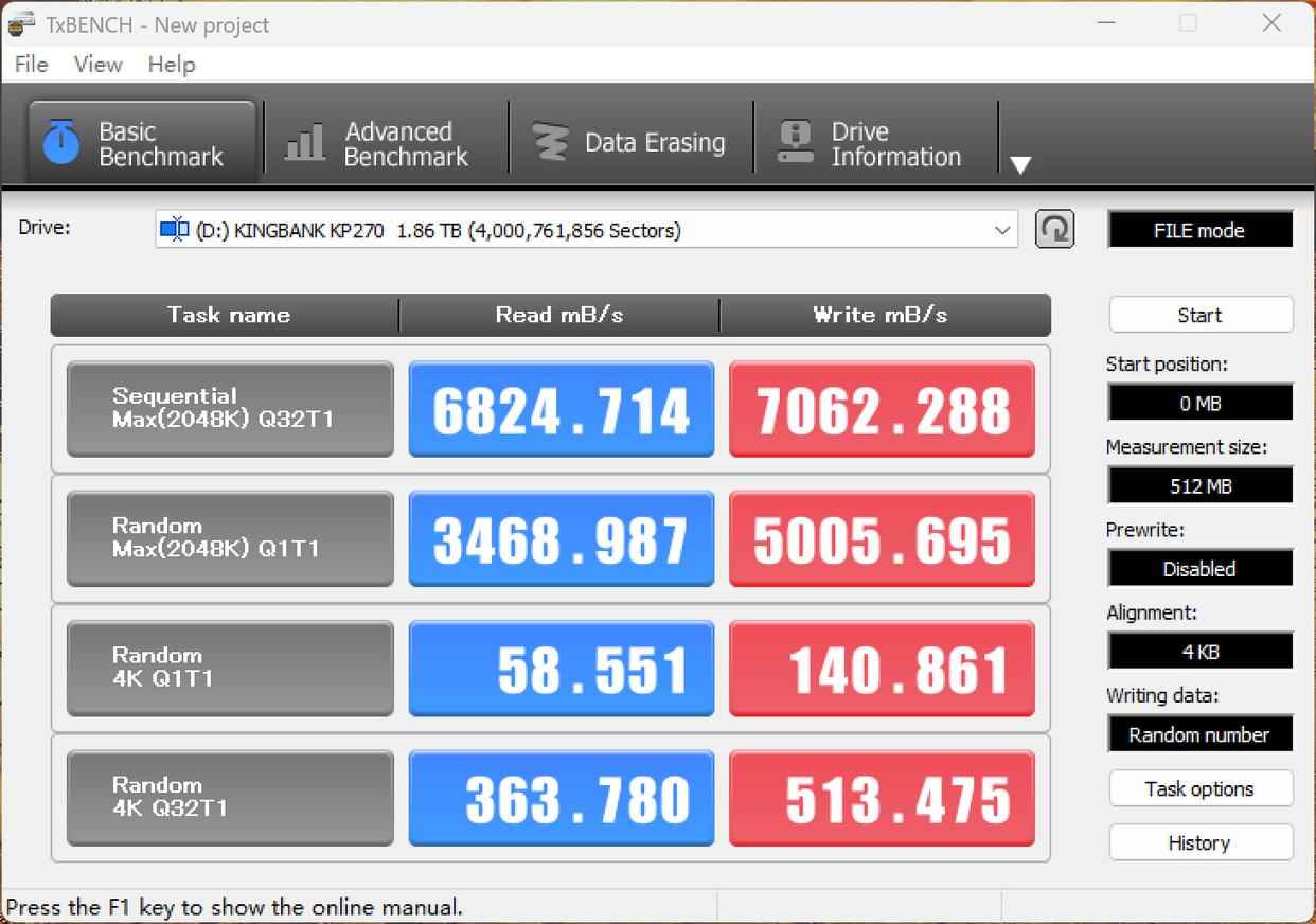 TxBENTxBENCH测试数据也比较稳定,读取速度6824MB/s,写入数据7062MB/s.