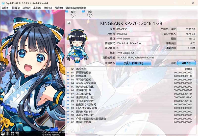 金百达KP270 2TB 固态硬盘评测 2G独立缓存!