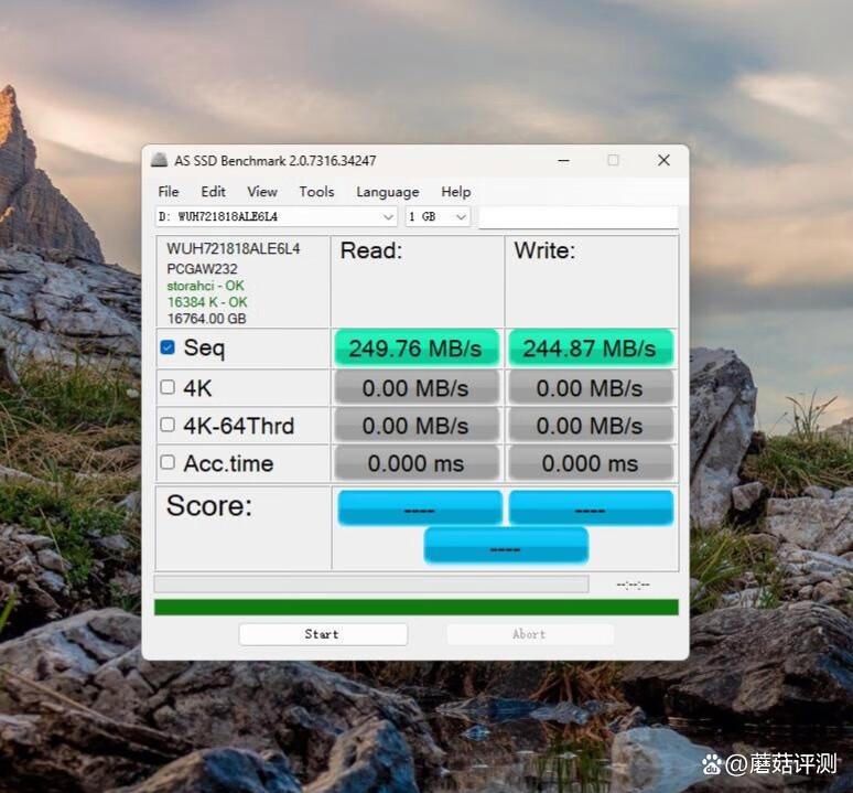简单跑个AS SSD的顺序读写测试,顺序读取速度在249.76MB/s、写入速度在244.87MB/s,表现还不错。
