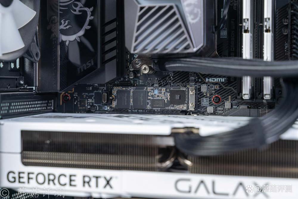 主板是微星的X870E暗黑主板,这块主板最上面的M2插槽支持快拆,日常拆装M2固态硬盘特别方便。