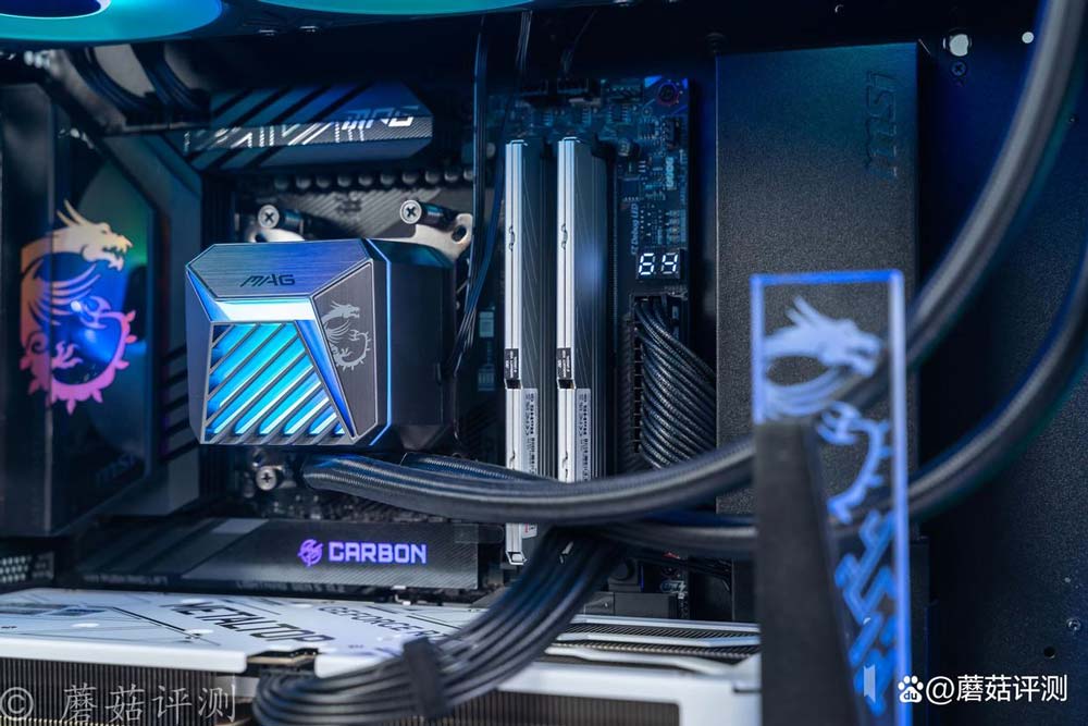 微星这块X870E暗黑主板的颜值很漂亮,尤其是主板左侧供电散热件的顶部,有微星经典的龙标LOGO,还支持ARGB灯效、支持主板同步,是真的好看。