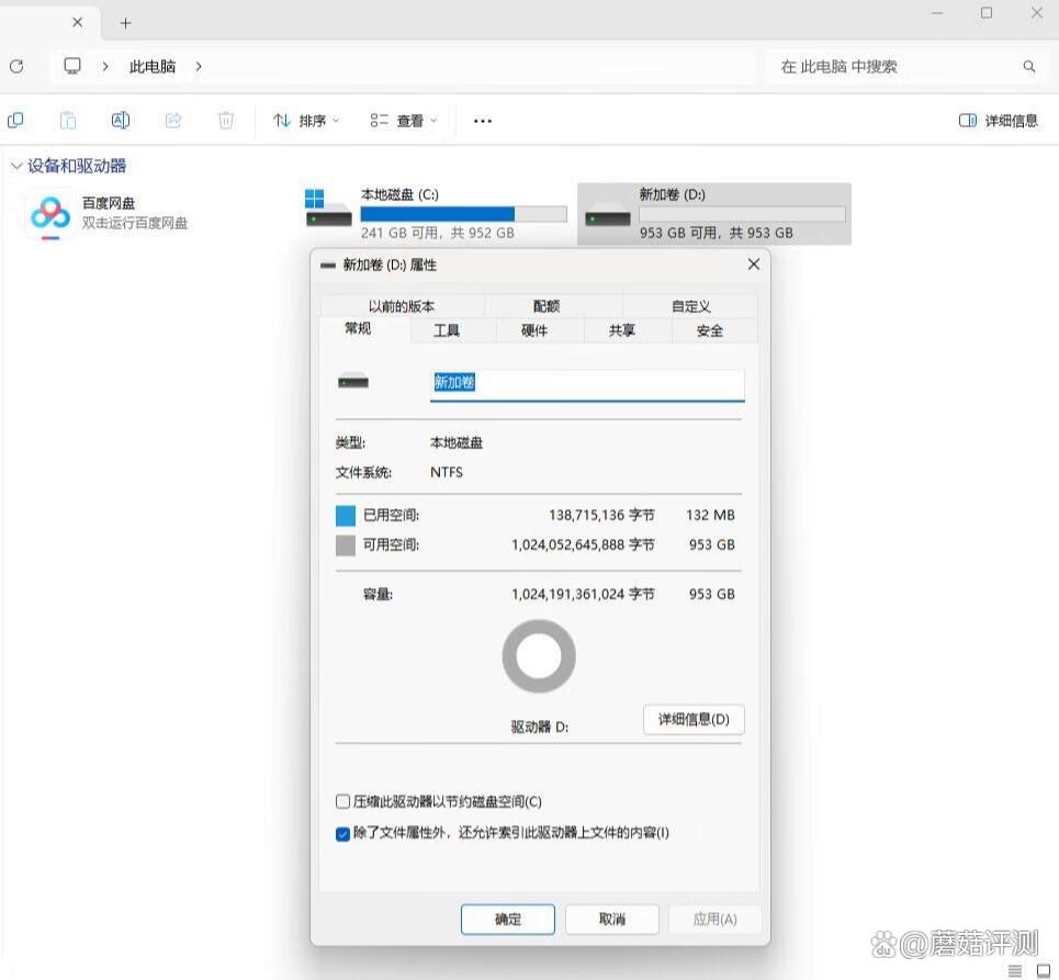 标称容量1TB,实际容量在953GB左右,还不错。