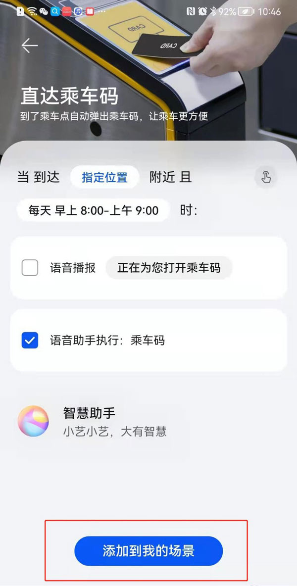 鸿蒙系统手机指定地点自动打开乘车码的方法教程