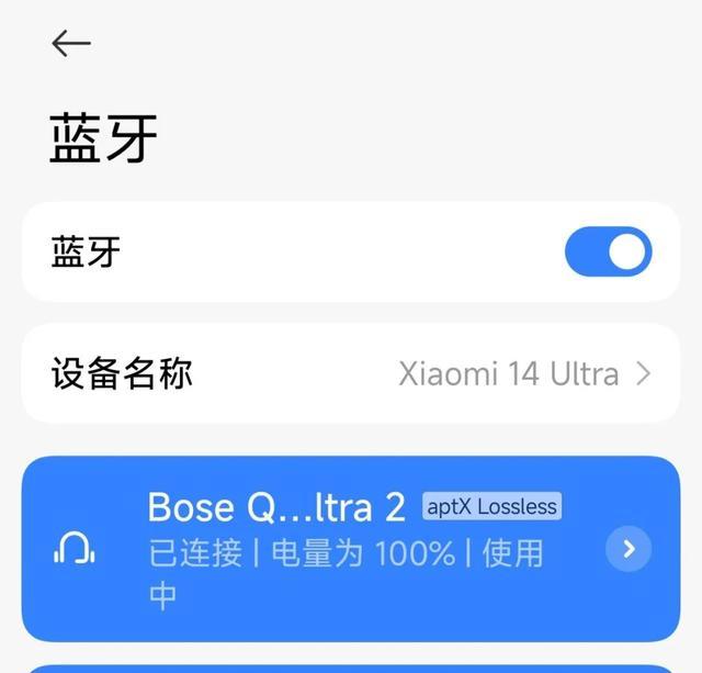 最后谈谈Bose QC消噪耳塞 Ultra II的音质。它支持高通aptX Adaptive自适应高清音频编解码技术,搭配通过Snapdragon Sound骁龙畅听技术认证的设备时,可自动适配无损音频与低延迟处理。将其与小米手机14 Ultra连接时,会自动工作在aptX Lossless模式下,蓝牙设置详情页中还有低延迟选项。