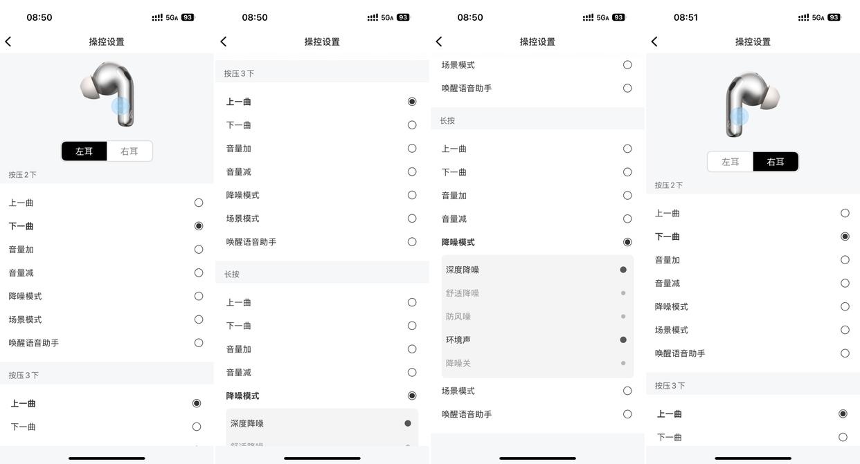 至于触控逻辑,有左右耳之分,还有按压2下、按压3下、长按等方式,并且对应的功能也可以通过漫步者APP进行自定义,这点也很方便。