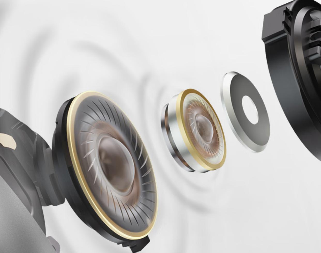 这种结构的优势是什么呢?小直径的动圈单元,能更快响应高频信号、保持高音的纯度;而大的动圈单元可以推动更大空气体积,实现更好的低音输出,频率响应可达20Hz-40KHz。