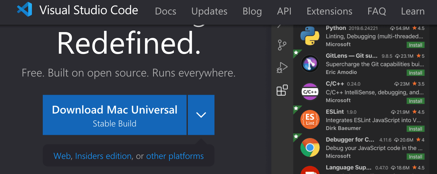 安装教程: https://www.runoob.com/w3cnote/vscode-tutorial.html