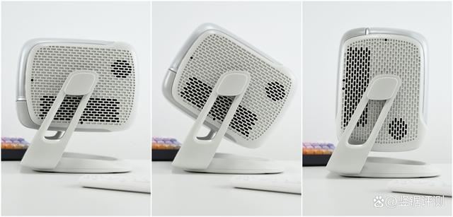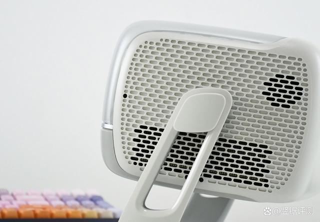 微果V7 Plus的侧面实拍,两侧这里分别对应了散热出风口以及进风口,同时音箱位置也设计在了两侧,采用了由金耳朵调校的双5W HiFi音箱,并支持当作蓝牙音箱使用。