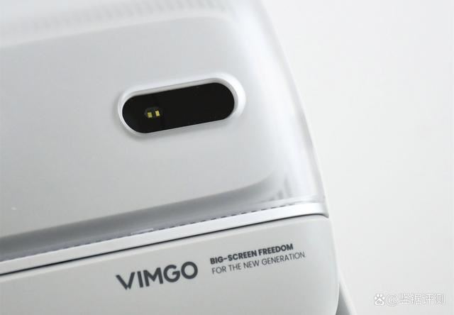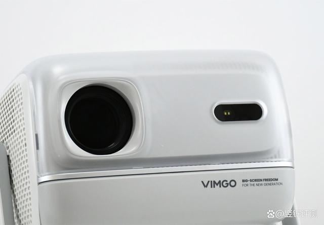 机身正面就是微果V7 Plus的投影镜头了,采用了全玻璃镜头,而镜头旁边则是用于自动对焦的激光TOF,结合搭载的第二代鹰眼视觉算法以及内置的六轴陀螺仪、AI图像矫正算法,让微果V7 Plus相较于那些使用Camera摄像头自动对焦的智能投影仪,能实现更快速的无感对焦。