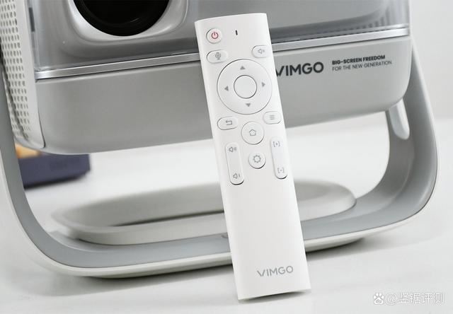 微果V7 Plus的遥控器实拍,不难看出这台智能投影仪是具备语音助手功能的。