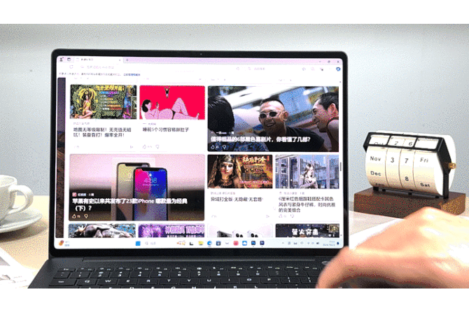 高精度十点触控技术意味着,无论是进行单点轻击,如快速打开应用、选择文本,还是双指手势,如滑动页面、缩放图片或地图,Hi MateBook 14都能即刻响应,带来流畅无阻的交互体验。想象一下,在浏览网页或文档时,可以滑动翻页,双指轻轻一捏,即可轻松缩放页面,无论是查看细节还是概览全局,都得心应手;从事在创作设计时,可以用手拖动和拖动视频进度条,选择功能进行操作;在欣赏照片或视频时,指尖轻扫即可流畅切换,享受如同翻阅实体相册般的真实触感。