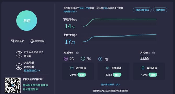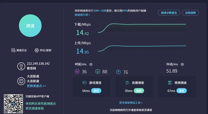 我们在正常办公区环境下使用Hi MateBook 14连接无线网络进行测速,下载14.59、上传17.79 Mbps,之后在多个比较封闭的会议室,甚至在办公区外的楼道里测试,Hi MateBook 14 的无线网络都很稳定,而且几乎没有延迟。