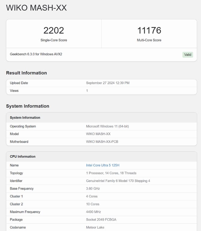 GeekBench 是一个跨平台测试,显示的结果以web页面呈现,其通过模拟多个办公、娱乐的场景,对处理器性能进行评估。结果显示,Hi MateBook 14 的单核得分为 2202,多核得分 11176。