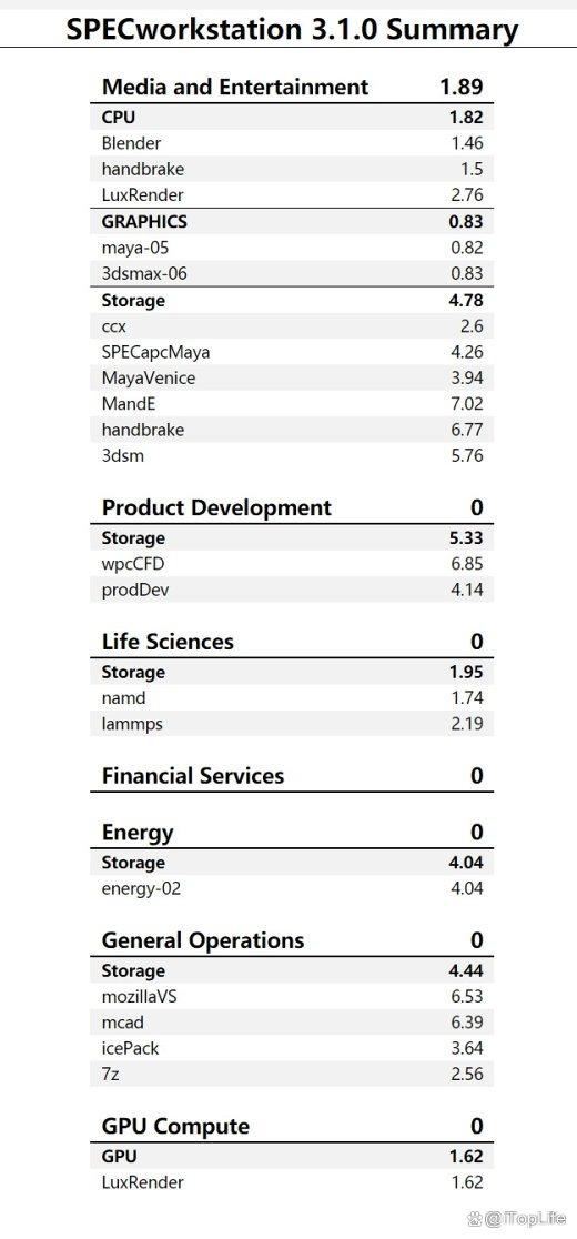 由SPEC组织开发的SPECworkstation是专门设计用于评估计算机工作站性能的基准测试,它不仅仅关注CPU性能,也涵盖了系统整体表现,包括内存、存储、GPU等。在Media and Entertainment测试中,惠普战X16也有不错的表现。