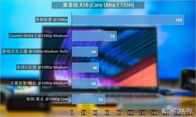 比如在喜闻乐见的游戏环节中,像《英雄联盟》、《反恐精英2》这样对GPU性能要求不高的游戏,配合笔记本16英寸120Hz的刷新率,确实获得了不错的体验。同时由于核显Xe-LPG对光线追踪提供了硬件支持,因此应付游戏中少量光追场景也是可以做到的,再配合部分游戏设置开始提供对XeSS的支持,也让惠普战X16对游戏中的深度学习超采样技术变得更为得心应手。