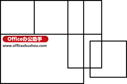 1、根据自己预想的构图方案插入数个矩形(可先用纸和笔在一旁画画方案草图,进行一下比较和筛选)。将矩形设置为无填充色,方便观察各个矩形之间的位置和大小关系,如下图所示。