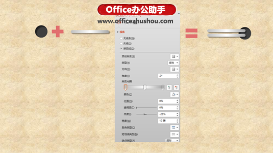 3、绘制翻页扣环:插入—>形状—>真线,设置直线属性:渐变、端点类型为圆形,形状效果设置外阴影。