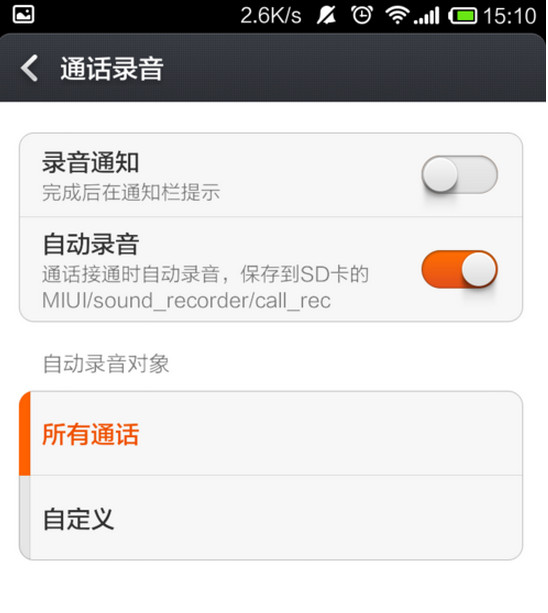 进入到如下图的 “通话录音”设置界面,选择如下图的设置,则可以对所有通话录音。