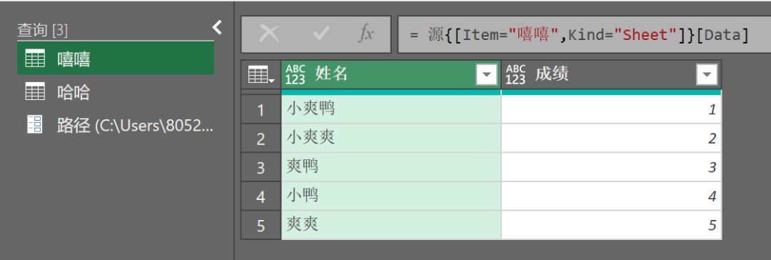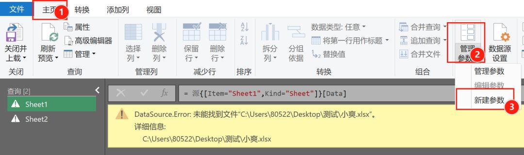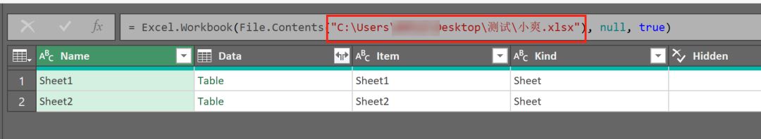 如下图,我们导入 Excel 文件之后,进入 PQ 编辑器中,可以看到外部的 Excel 文件是个绝对路径。