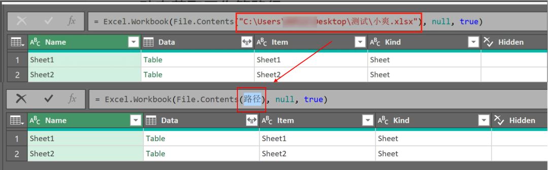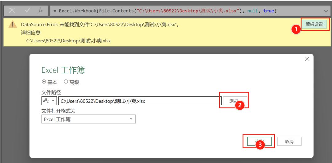 当我们使用 PowerQuery 获取外部的 Excel 文件时,传递进去的是绝对路径。