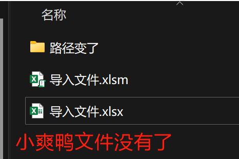 然后,我把「测试」文件夹中的「小爽鸭」文件移到「路径变了」文件夹中。小爽鸭工作簿位置发生改变。