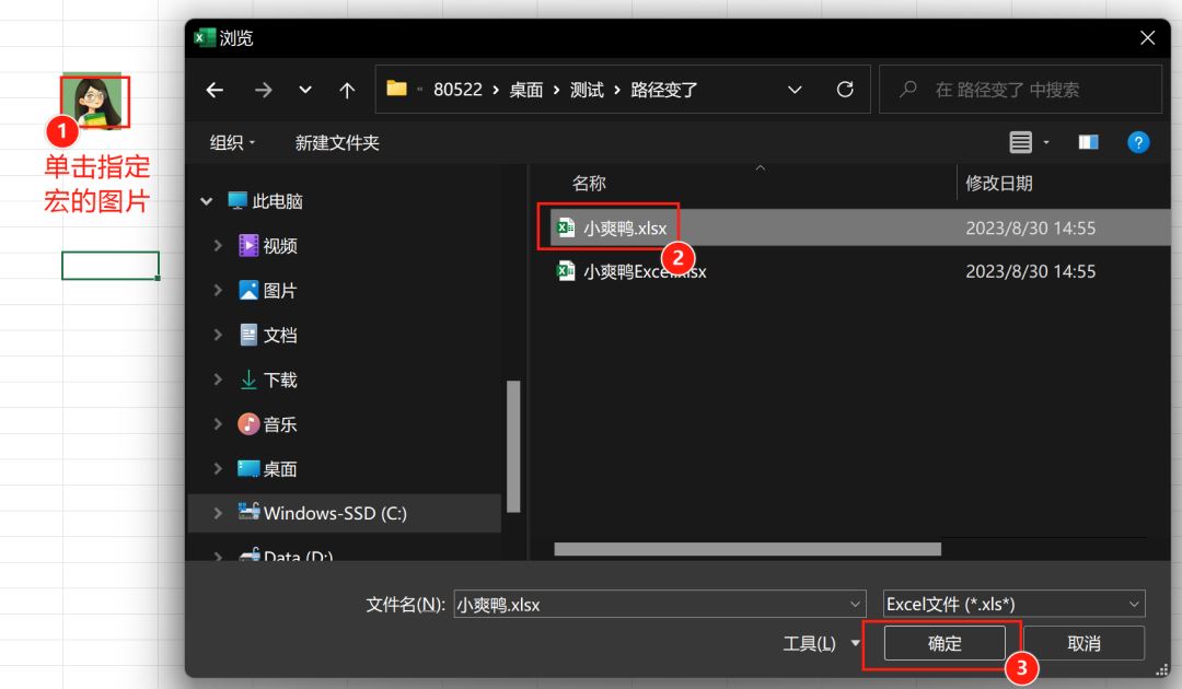 接着,我们单击一下图片,执行宏操作,选择移动后的文件,确定。