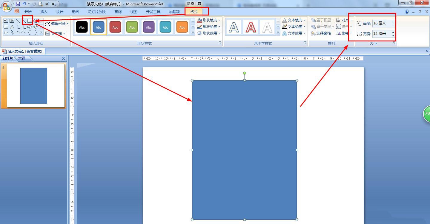 点击插入——形状,选择矩形插入——在格式中设置矩形高度为16厘米,宽度为12厘米。