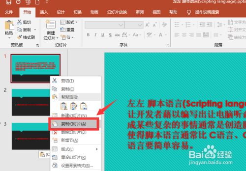 2.鼠标复制,点击幻灯片右击选择复制,然后粘贴。