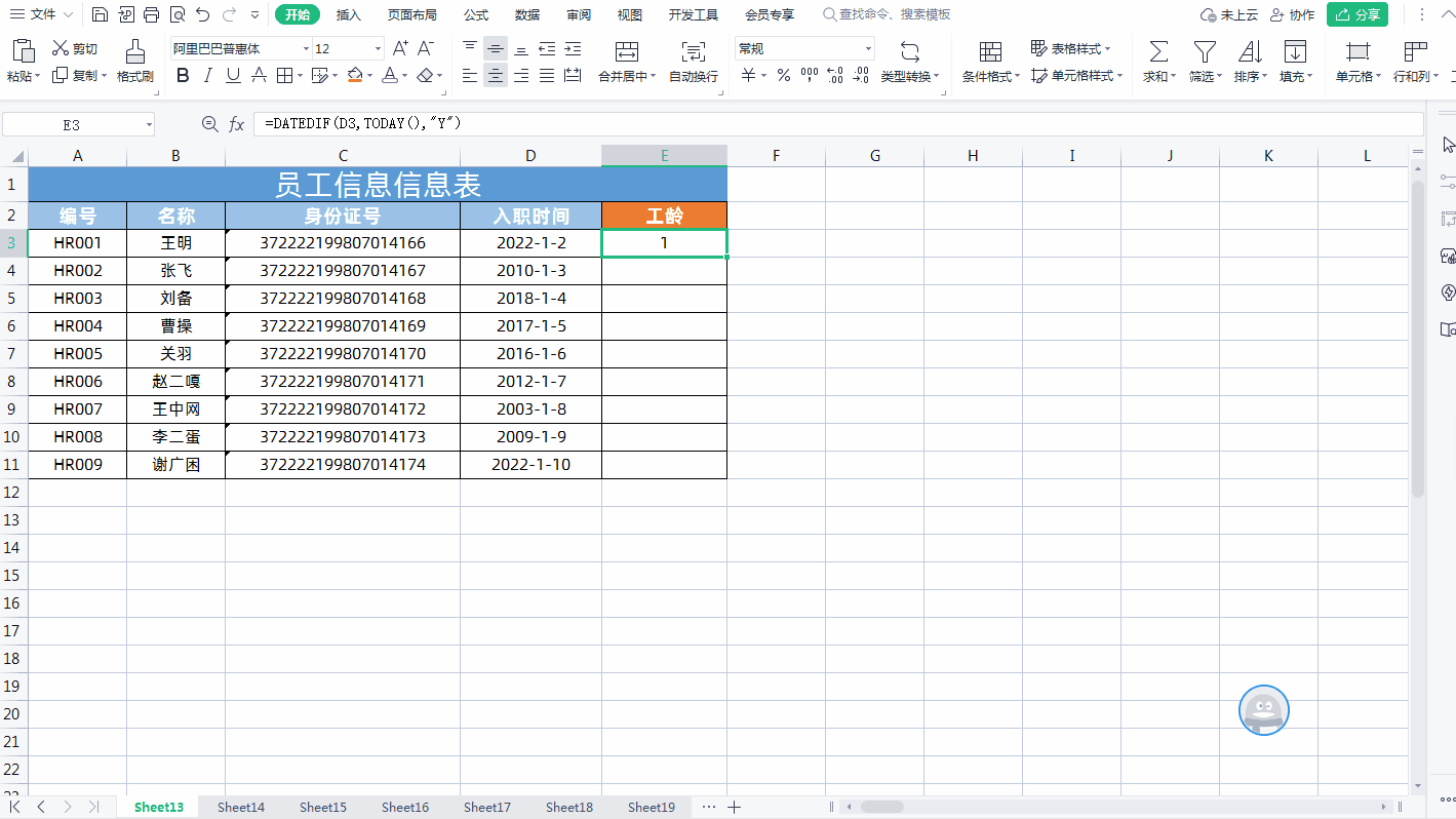 Excel隐藏函数DATEDIF计算精确到天级的工龄