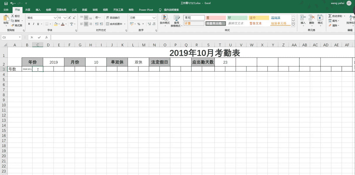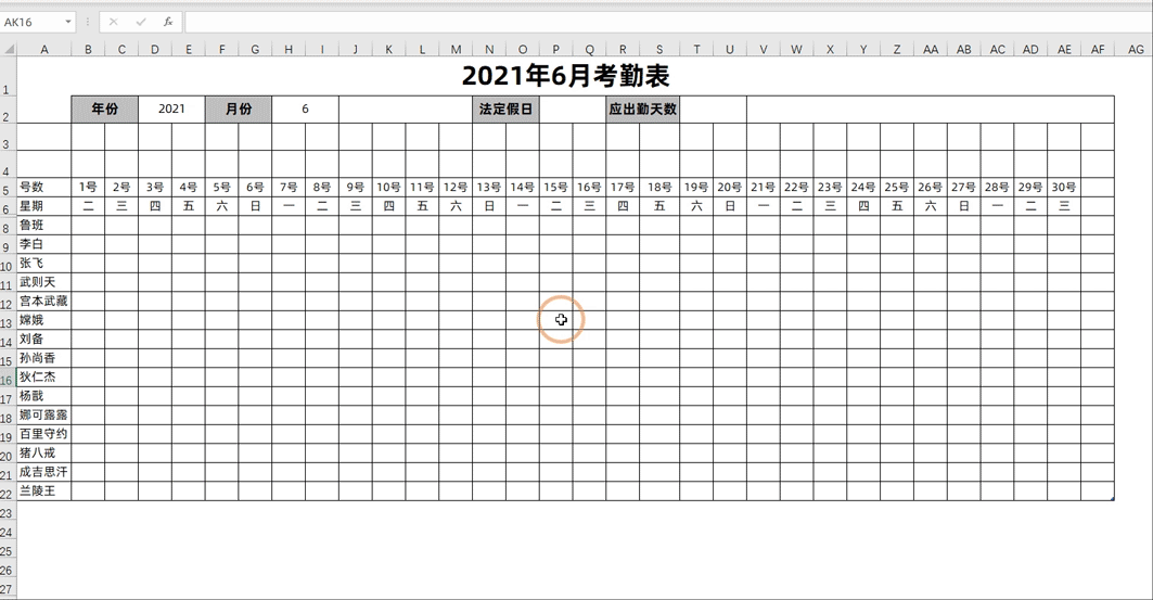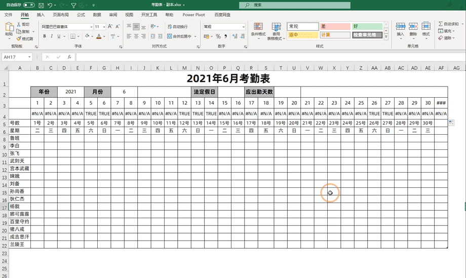 Excel考勤表根据休息日自动填充颜色,打造炫酷员工考勤表